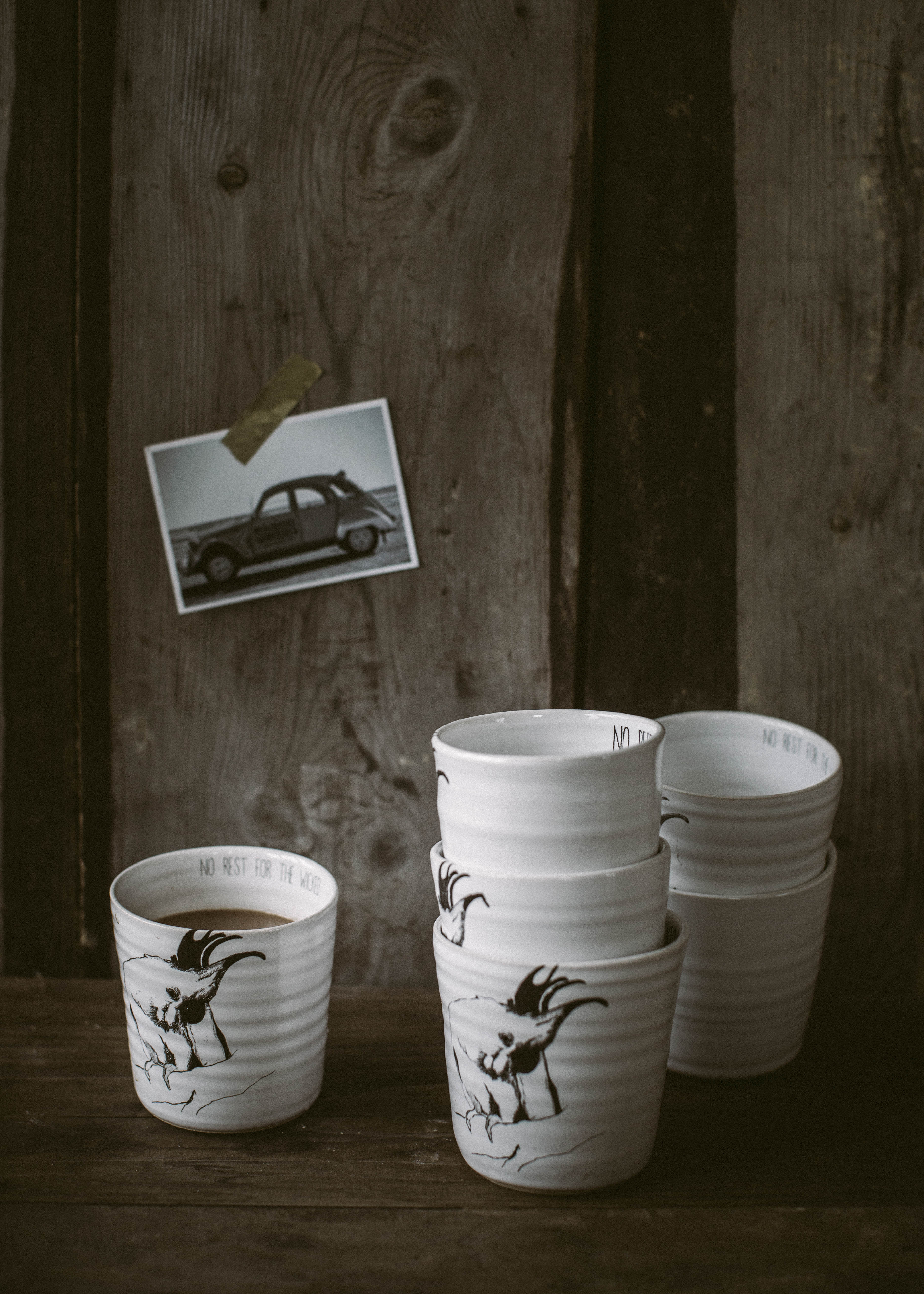 Och dessa otroligt vackra temuggarna och fat. Med våra initialer stämplade i. Vi har teamat ihop oss med en skara fantastiska kvinnor. Det är varbergskeramikern Lina Mourou som drejat både dessa och vår fina Sophia – The Cockatoo mugg.