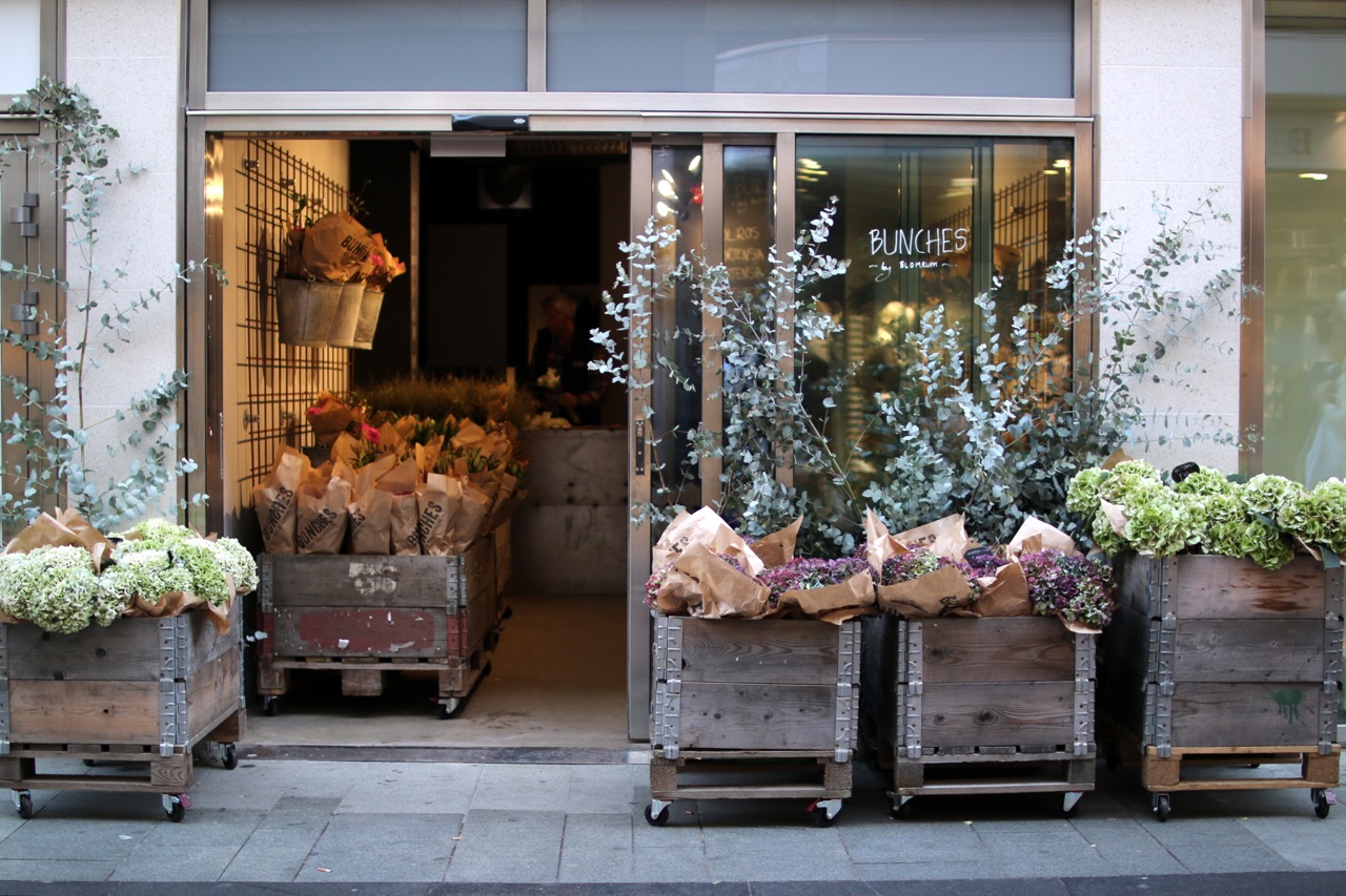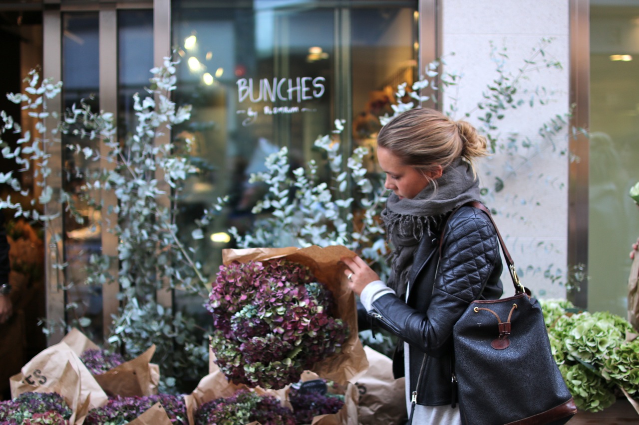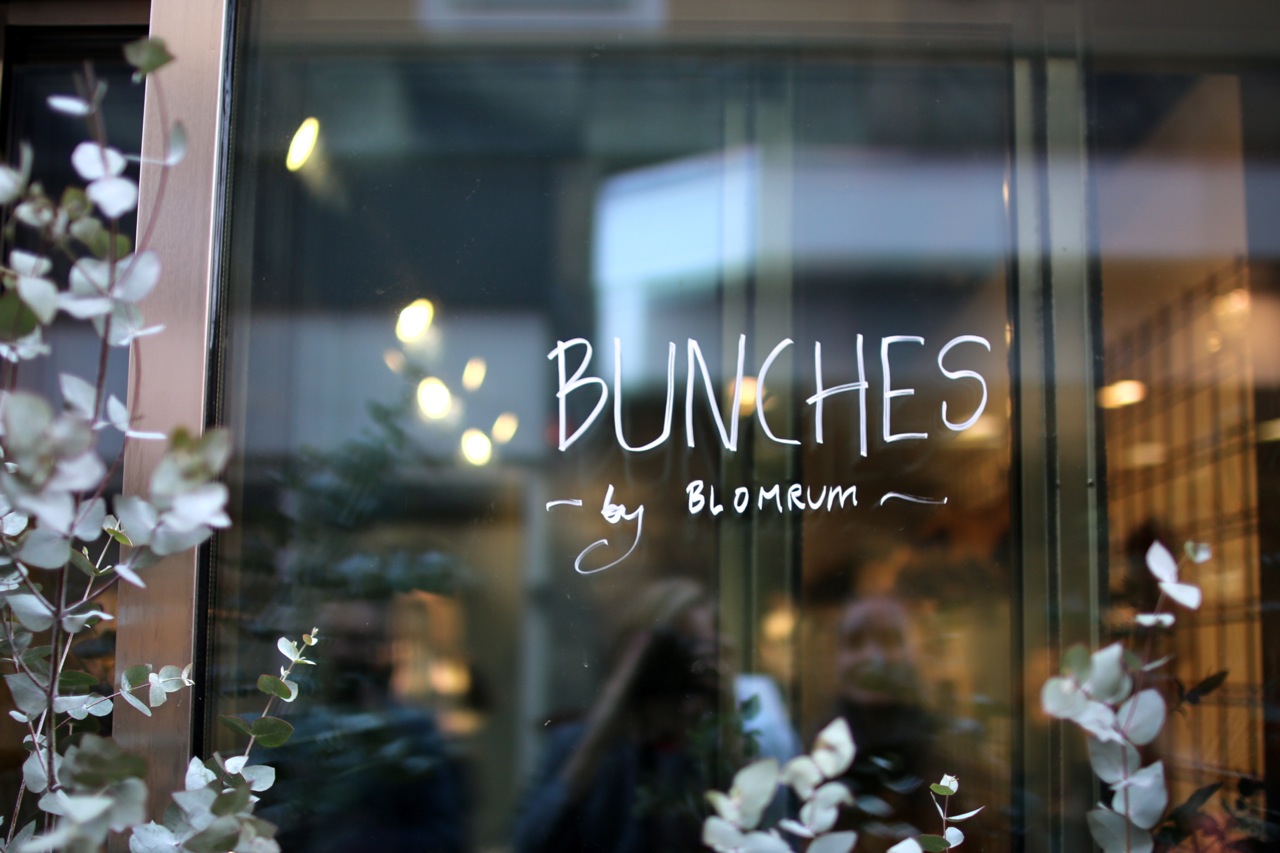 I torsdags öppnade Bunches by Blomrum på Fredsgatan 6, precis mittemot NK. Jag och Hanna har hört Linda berätta om planerna som hon och hennes kompanjon Robban har haft kring det och vi var såklart nyfika på hur det hade blivit, så vi gick förbi efter jobbet. Här är säljs alltså endast blommor i färdiga buketter så att man själv kan komponera ihop det man vill ha. Tanken är att man exempelvis köper en bukett hortensior, en bukett eukalyptus och så kanske en bukett nejlikor. Sedan går man hem och fixar till sin alldeles egna bukett. Himla bra koncept tycker jag! Och kolla in den smarta förpackningen man får buketterna i när man köpt dem, så smart och snyggt!