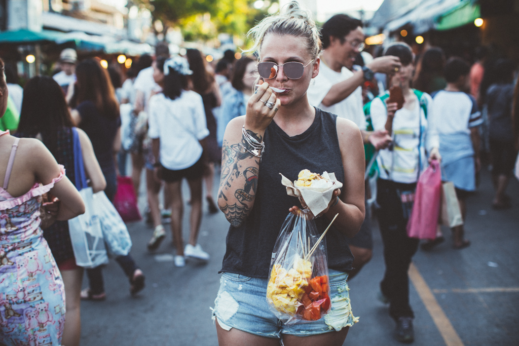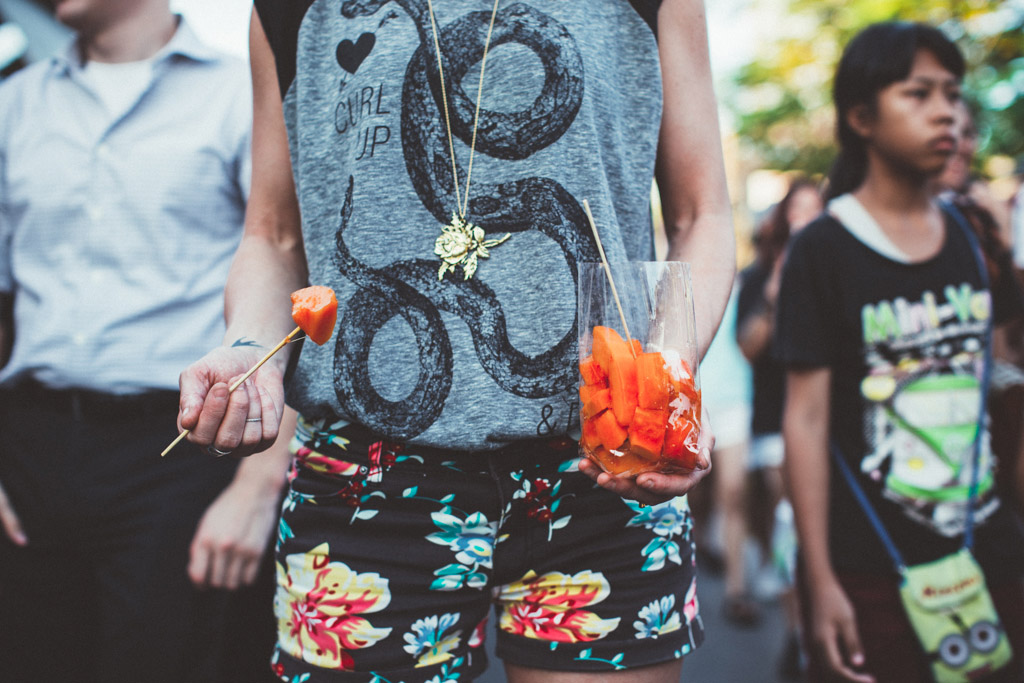 Marknad som suger musten ur den bästa. Lite frukt och cocosglass i skymningen är välförtjänt efter en hektisk dag.