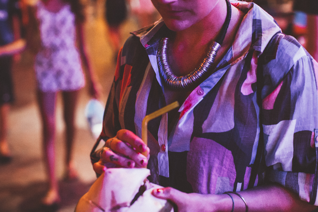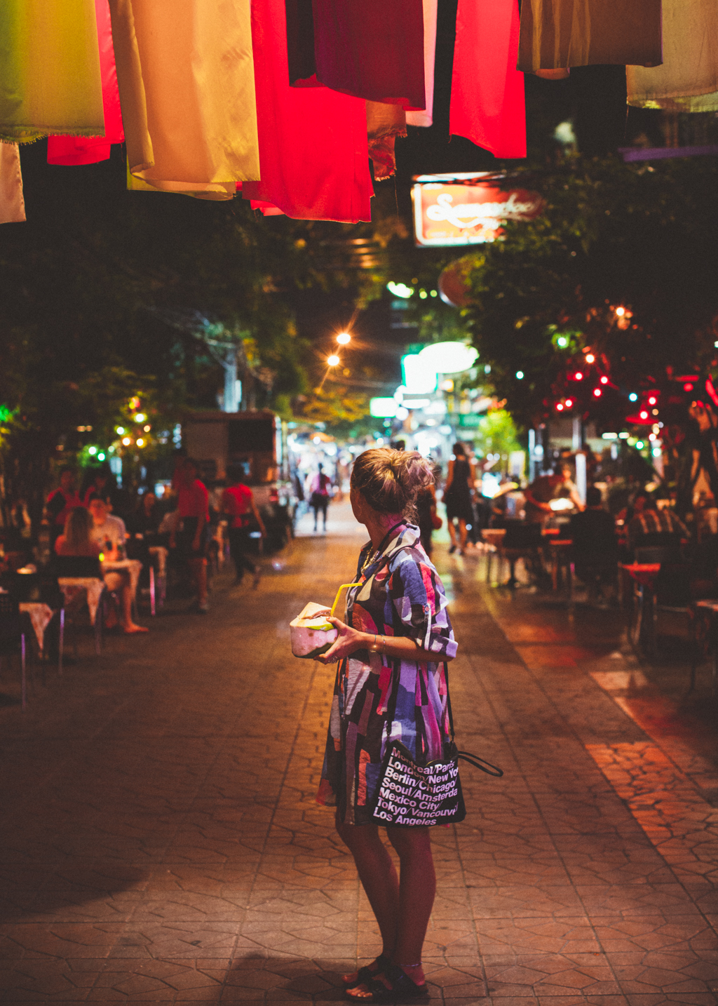 Senare på kvällen på vår gata. Man kan ströva runt hela natten och kika på livet runt om och dricka en och annan cocosnöt.