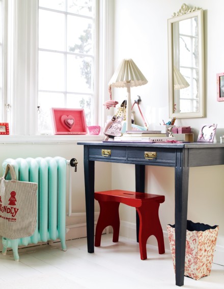 Fler barnrum ifrån Sköna hem. Finaste turkosa elementet. Jag älskar element på tassar. I en av våra lägenheter hade man bytt ut alla element. Någongång så fick jag en önsketanke att de kanske hade sparat de gamla och att de fanns kvar där bakom nya väggen, den såg ju så underlig ut. Inte särskilt troligt. Nu är vårt hus fullt av gamla tasselement. Men vi fegade och målade alla vita.