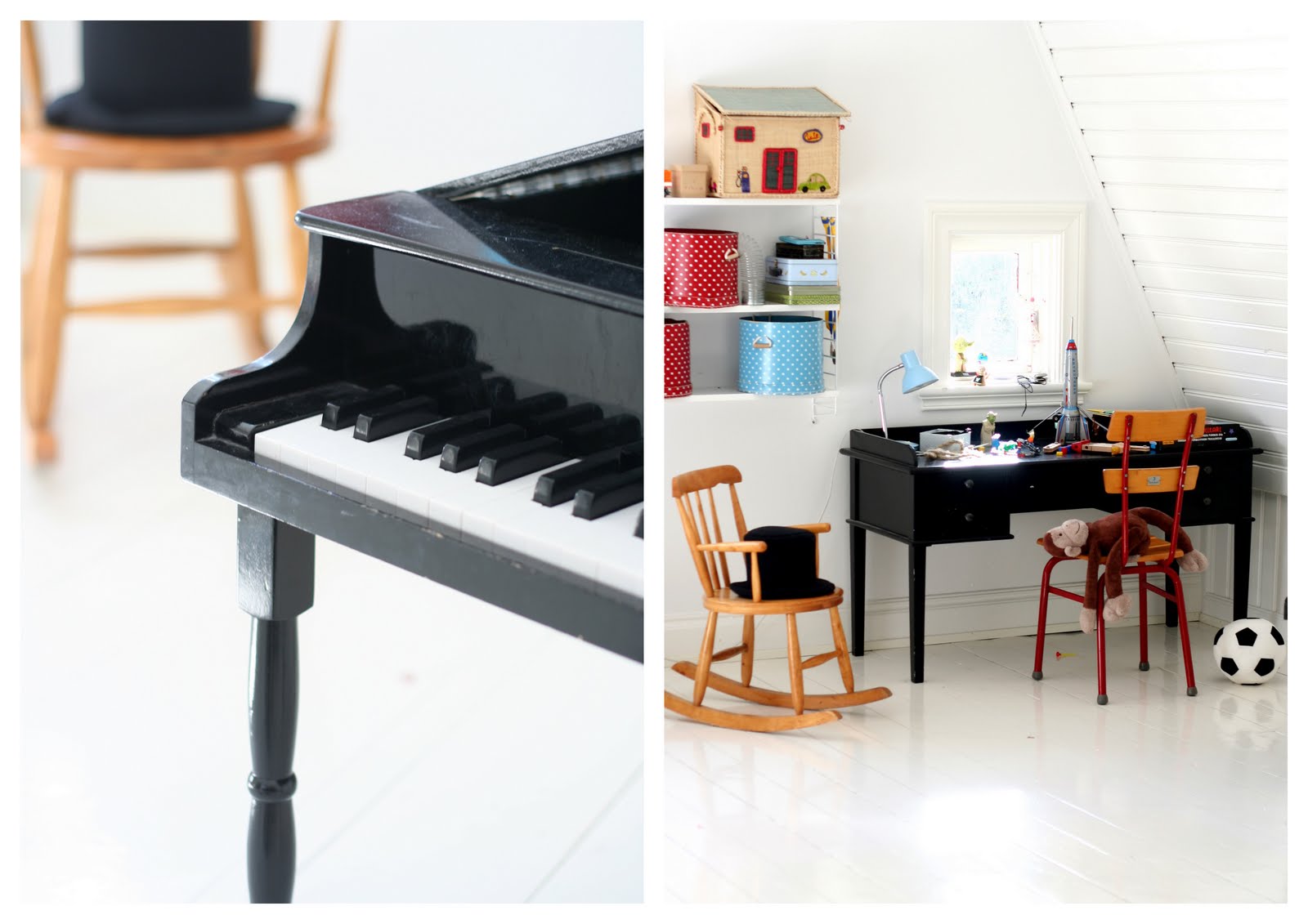 När vi flyttade till vårt hus så ordnade vi barnens rum först. Kanske för att vi trodde det var viktigt, för att de skulle känna sig hemma. Fast allra mest för att det är kul. Våra barn har en salig blandning av möbler och saker. Gammalt och nytt, urbilliga loppisfynd och våra personliga favoritmöbler som vi har tänkt att de här får följa med när de flyttar hemifrån. Mycket är inte typiska barnmöbler men passar ju lika bra där i barnrummet som vid vilken annan ålder som helst. Och jag tror verkligen på sådant som håller i längden.