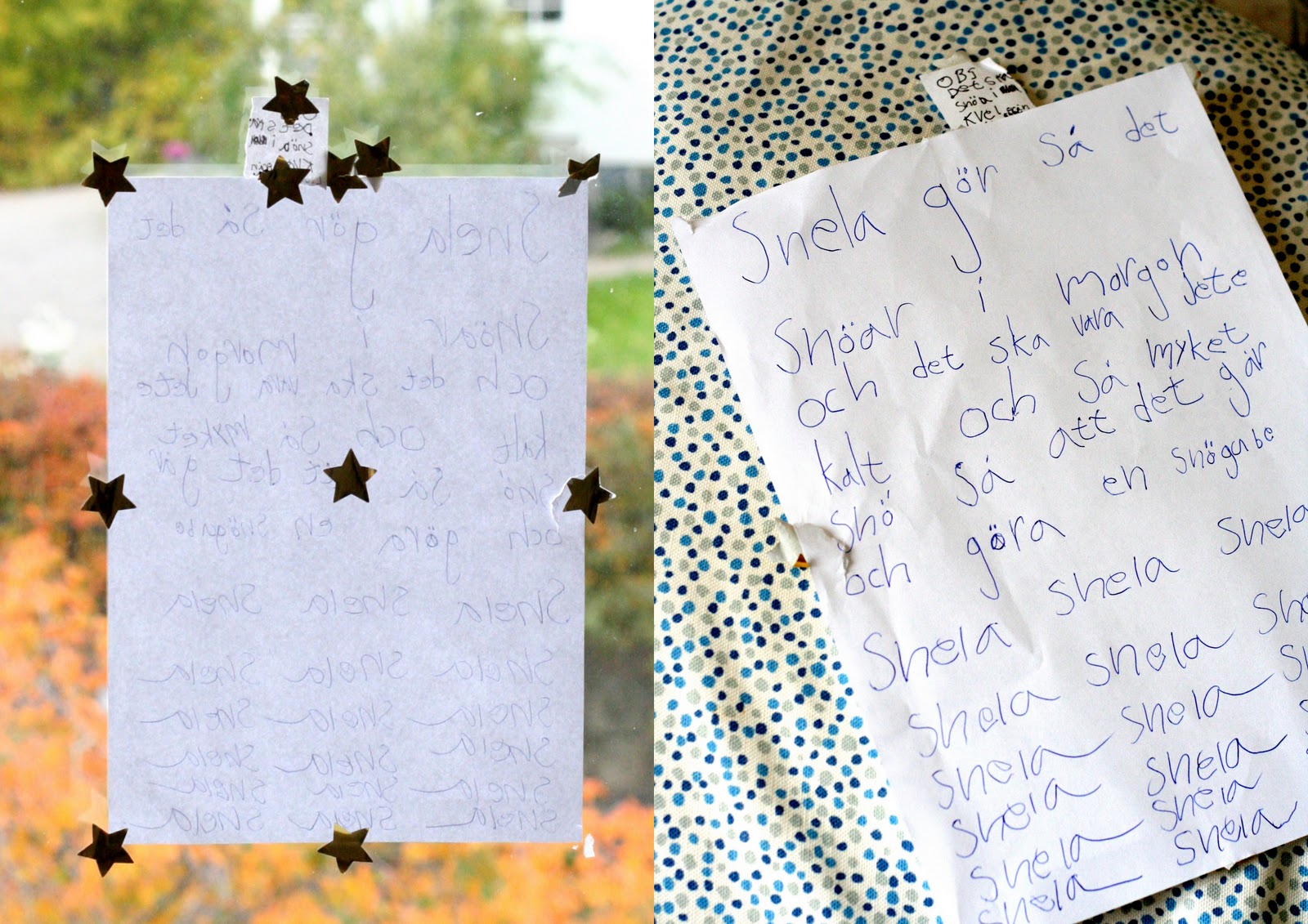 Inatt när jag skulle dra ner rullgardinen i Livs rum såg jag att hon hade klistrat upp ett meddelande på fönstret. Med texten utåt. Kändes onekligen en aning svårläst då hennes rum ligger på andra våningen. Men frågan är vem det var menat till…
