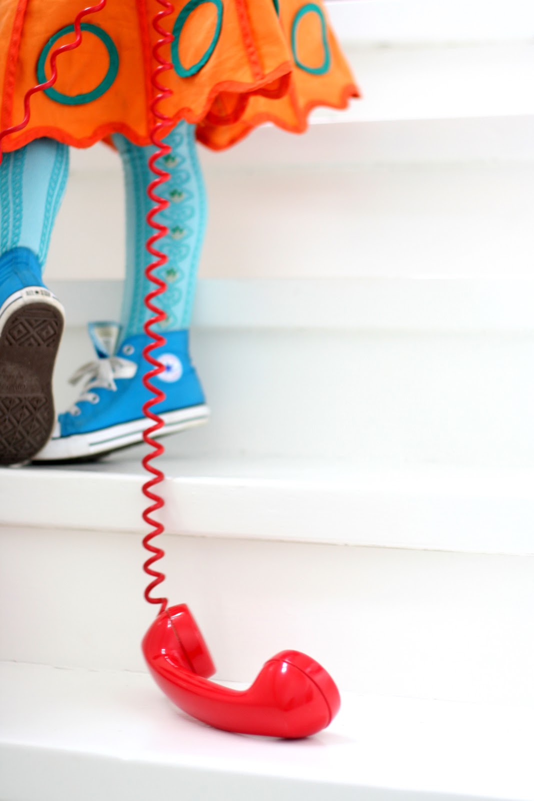 Nomi fyndade en leksakstelefon igår på loppis. Hon skulle ha den i lekstugan (skrev kelstugan först, sweet…). Nu var det ju i allra högsta grad en alldeles riktig telefon. Men vad ska man tro i hightechlurarnas tid. Om det är någon mer som tycker hon har maxad outfit så kan jag lova er att hennes 8-åriga syster (som älskar svart) tyckte detsamma. När vi hämtade de stora ungarna på 4H-lägret viskade Liv: