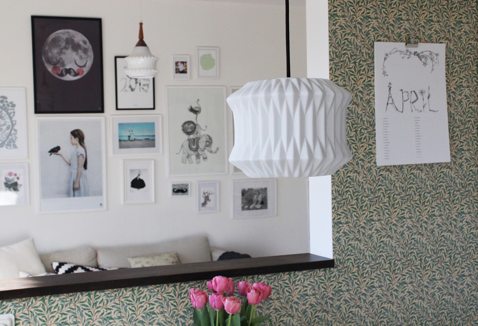 Lampan i vardagsrummet hittade jag på loppis och jag gillar hur dom matchar varandra.