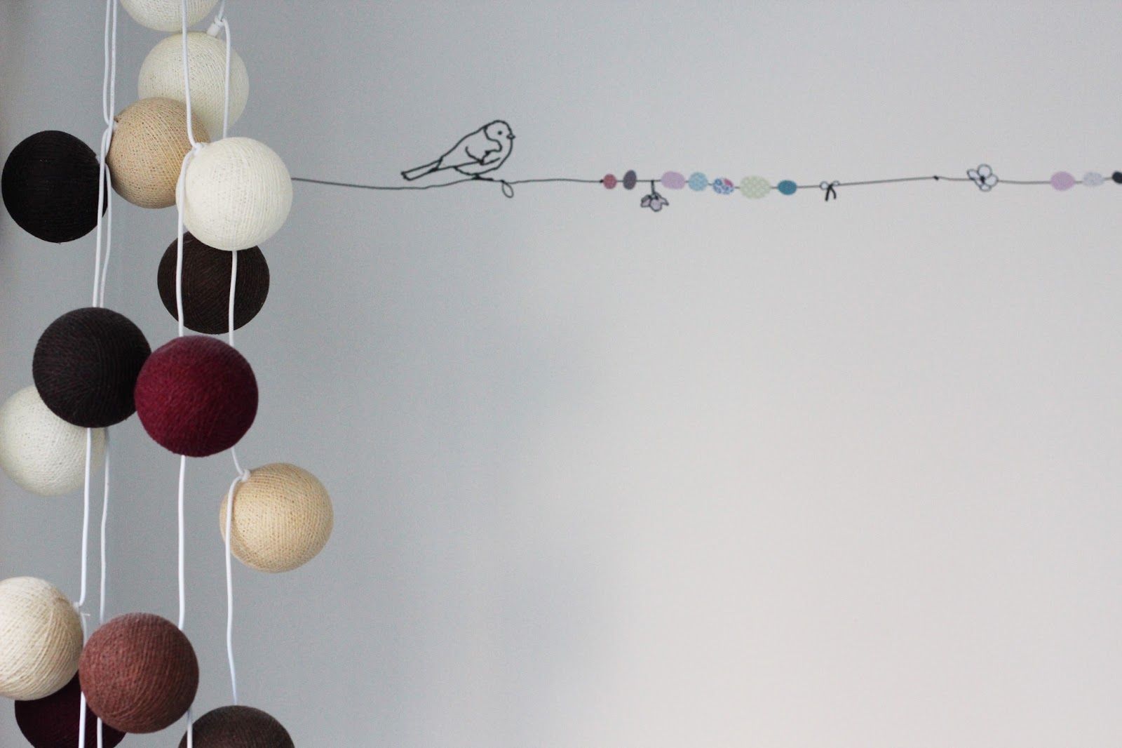 I sovrumsfönstret hänger happy lights som tänds varje kväll när lillan ska sova.