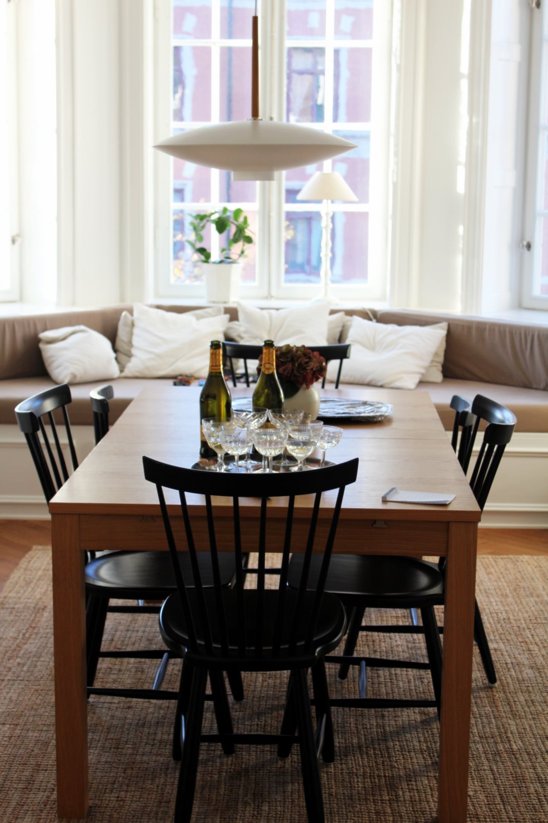 I lördags var vi hemma hos familjen S på invigning av deras nya kök i den här luftiga matsalen med ett stort underbart burspråk.