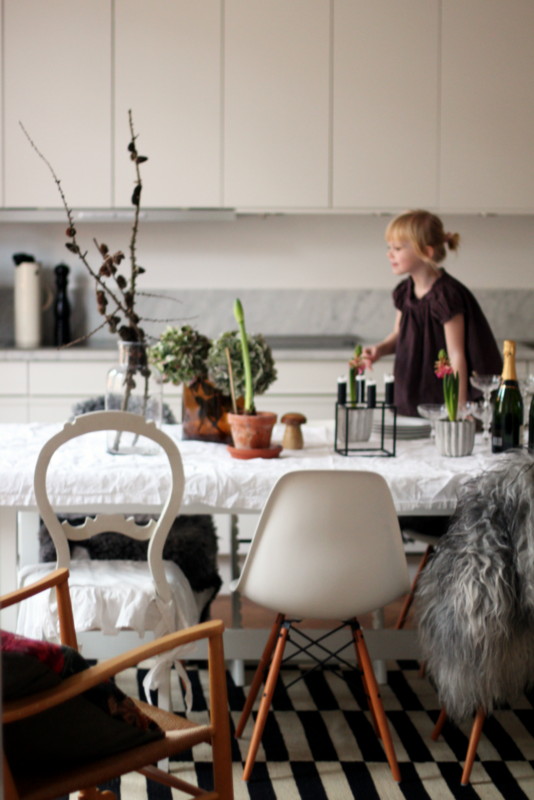 I dagarna firar vi att pappan i familjen fyller jämt. Tur att man har en hjälpreda som styr upp dukningen.